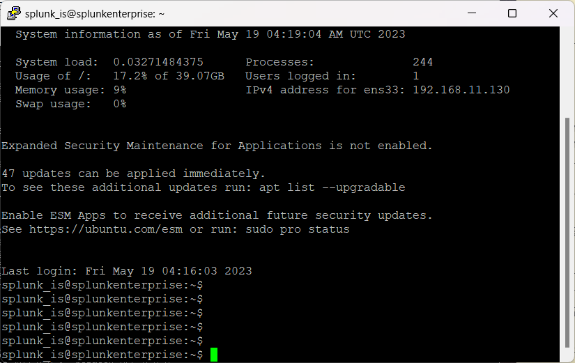 2023.05.18 - [Splunk/Project] - [ Splunk Project ] Preview 2 ) 생성한 가상 머신과 puTTY 연결하기