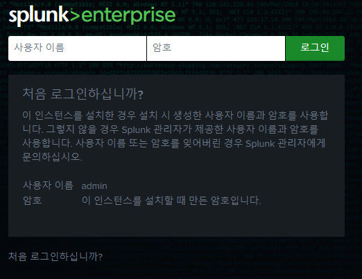 🐬 이 때 생성한 아이디와 비밀번호가 만들어질 Splunk 웹 서버의 아이디와 비밀번호 이므로🐬