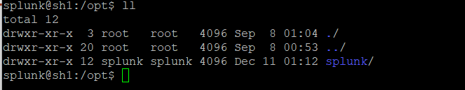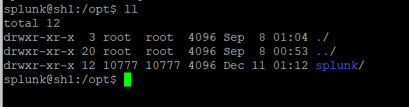 - splunk라는 디렉토리가 10777이라는 그룹의 10777이라는 사용자가 생성한 것이라고 나와있음