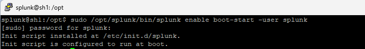 | sudo /opt/splunk/bin/splunk enable boot-start -user splunk |