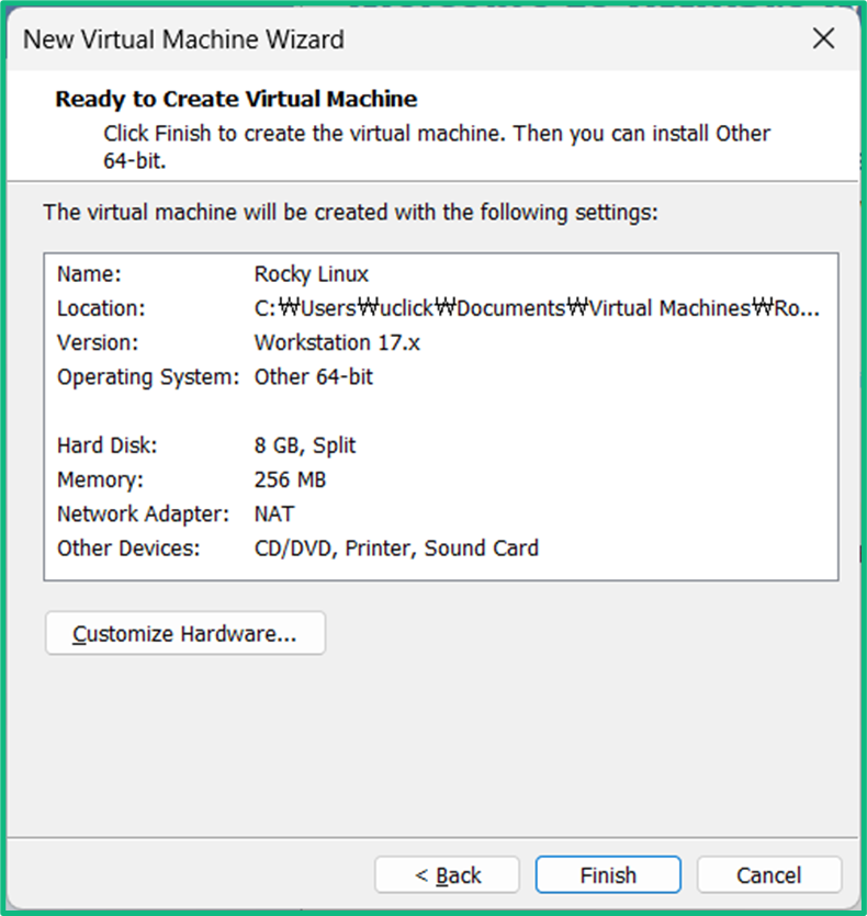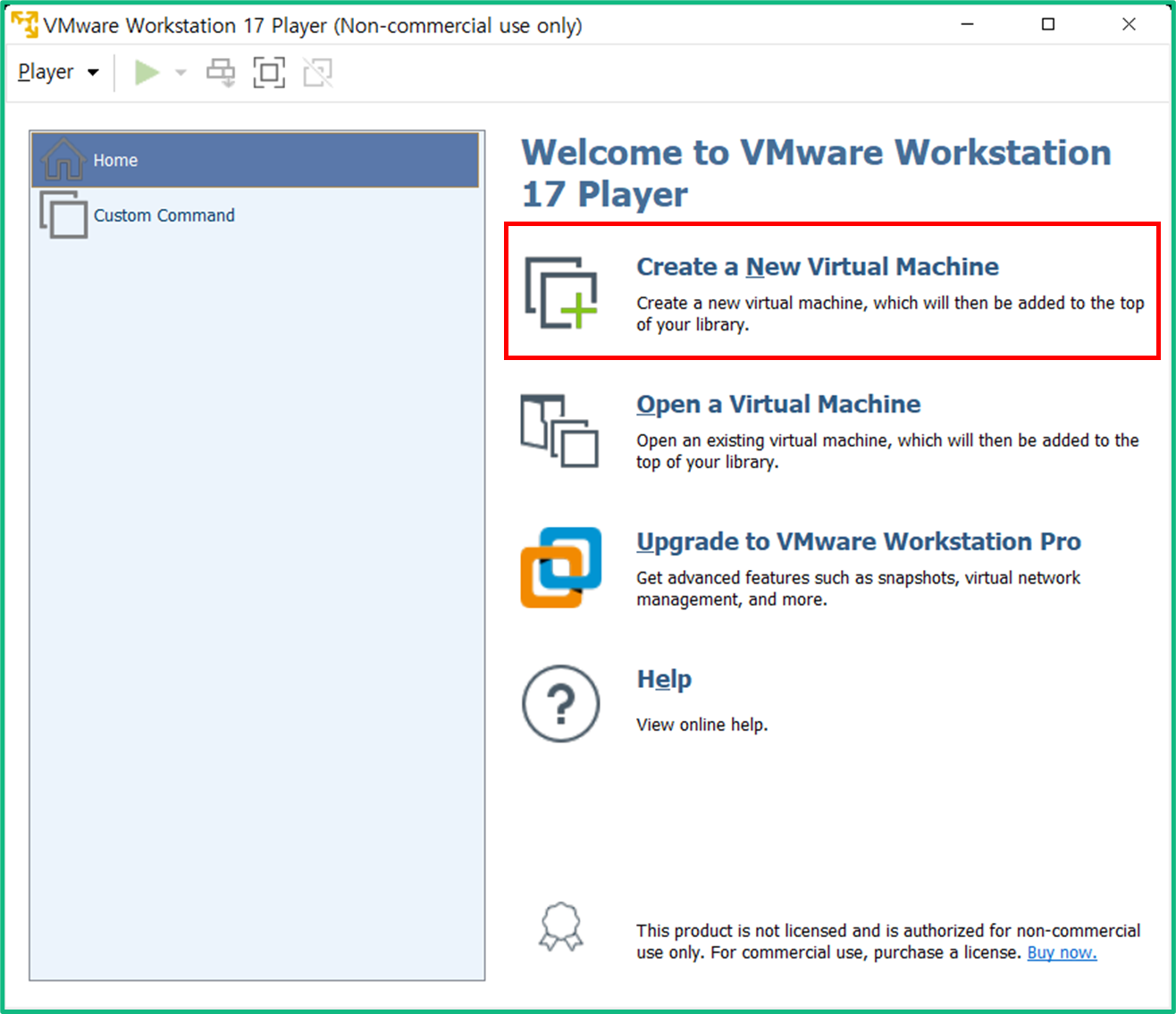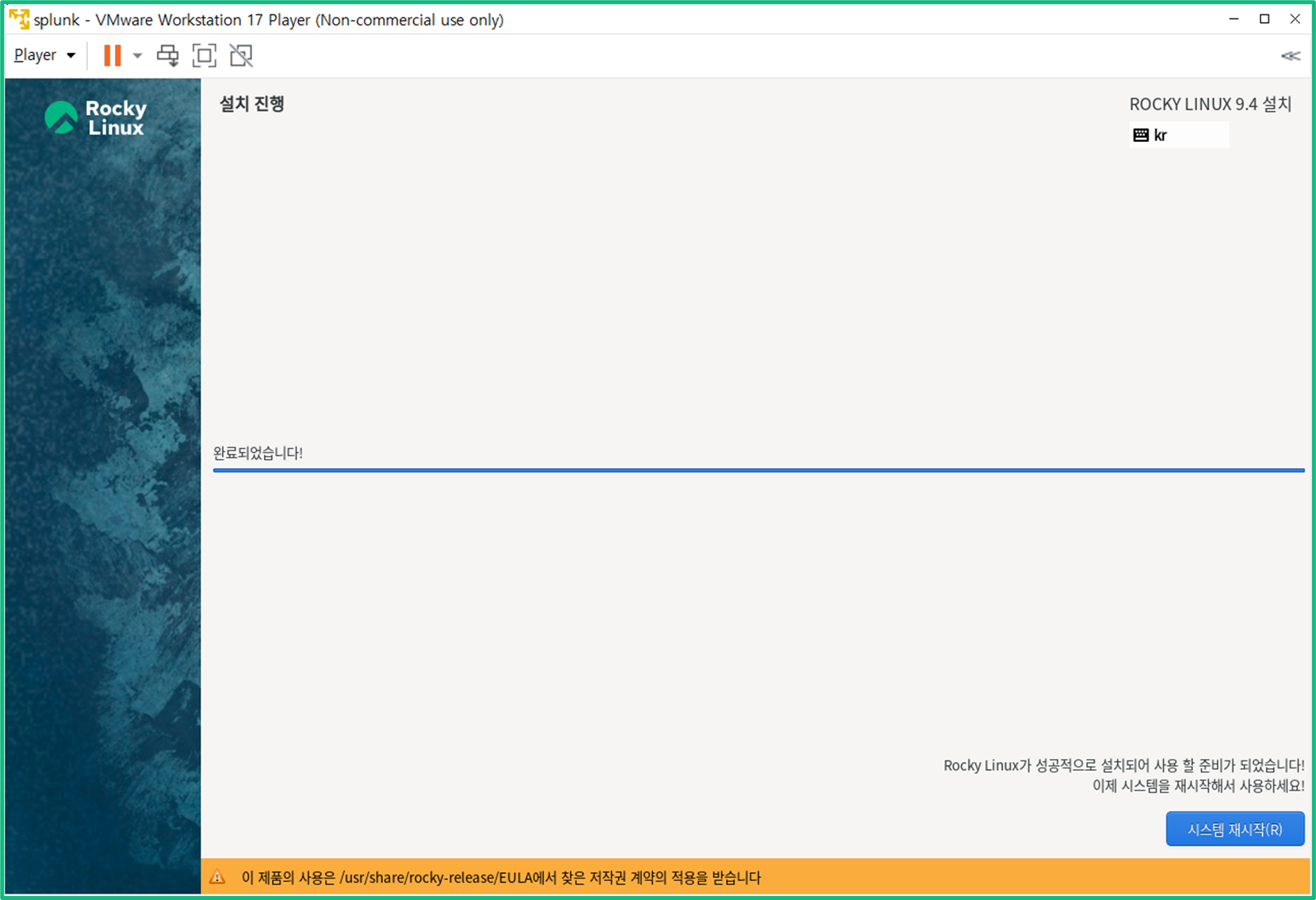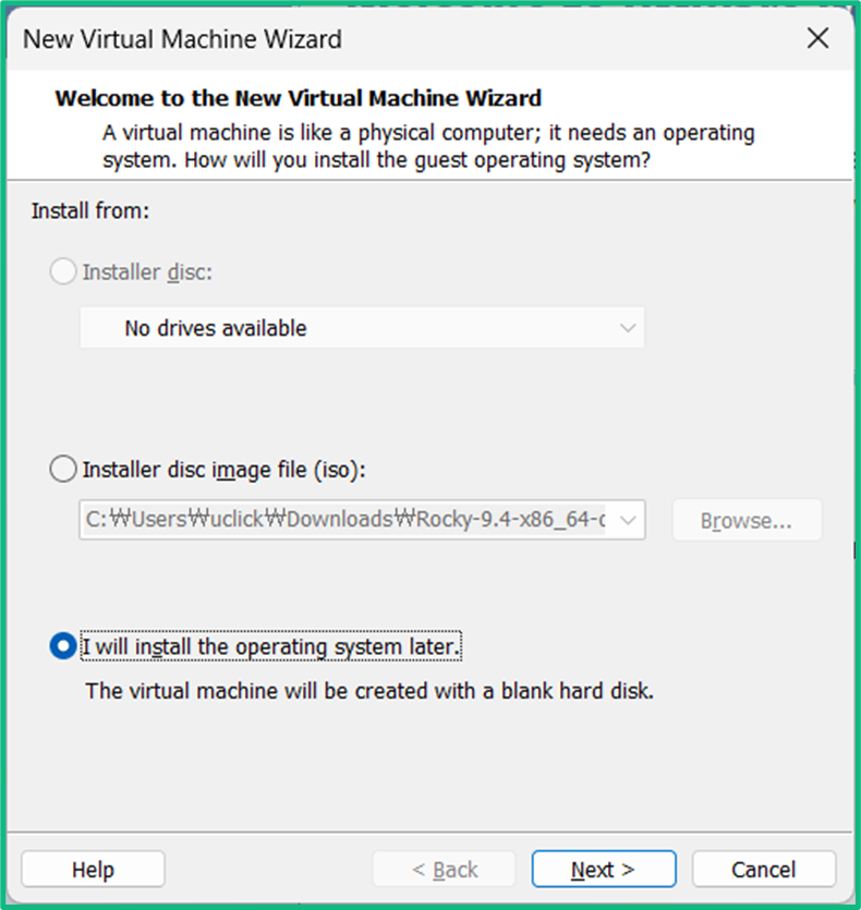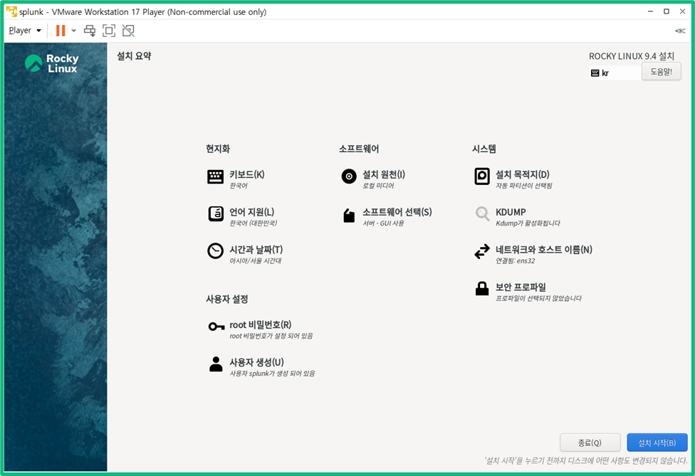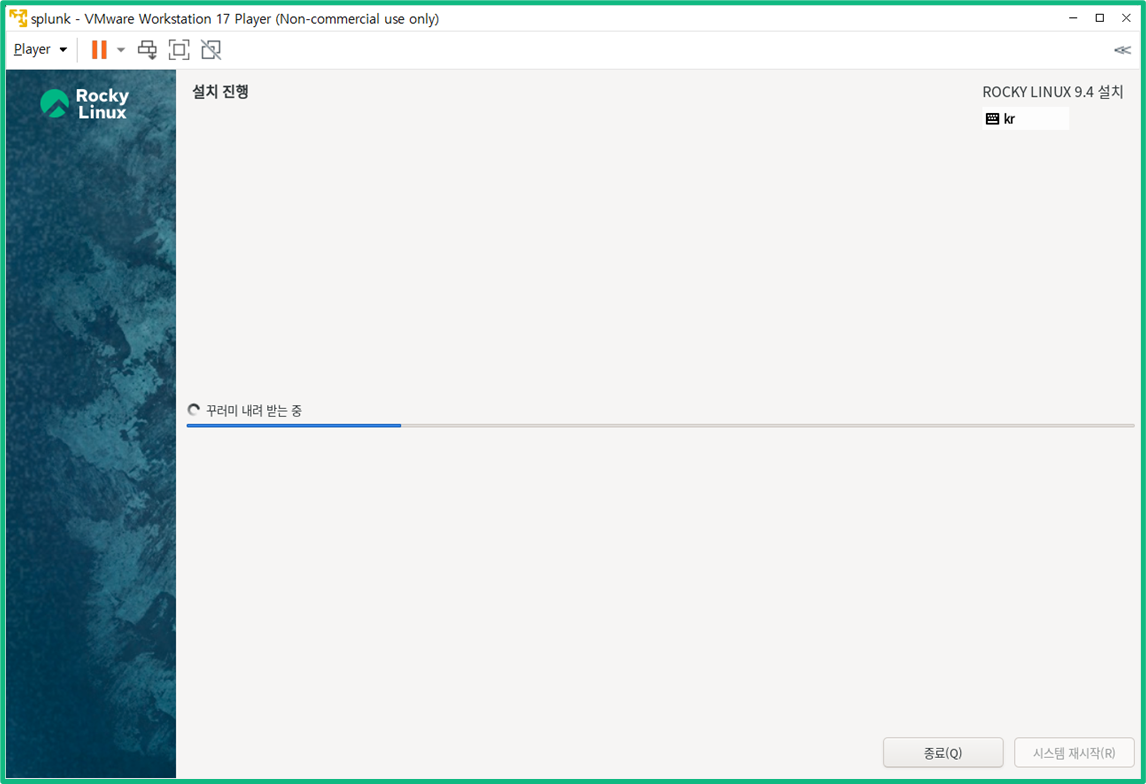 1) 왼쪽에 만든 Rocky Linux를 클릭하고 Play virtual machine 누른 후 OS 설치 시작