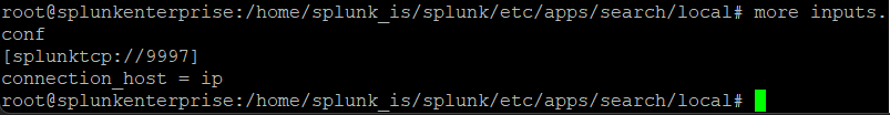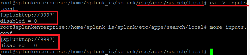 | sudo -s cat > inputs.conf 입력 후 Enter [splunktcp://9997] disabled =0 Ctrl + D 로 저장 $SPLUNK_HOME/bin에서 ./splunk restart |
