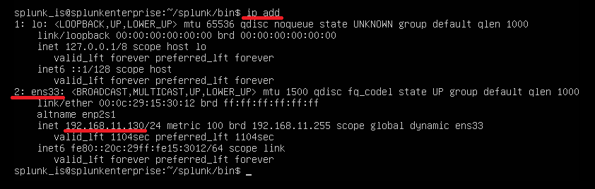 🌱 [ Step 3 ] ip add 명령어를 이용해서 splunk enterprise ip 얻기