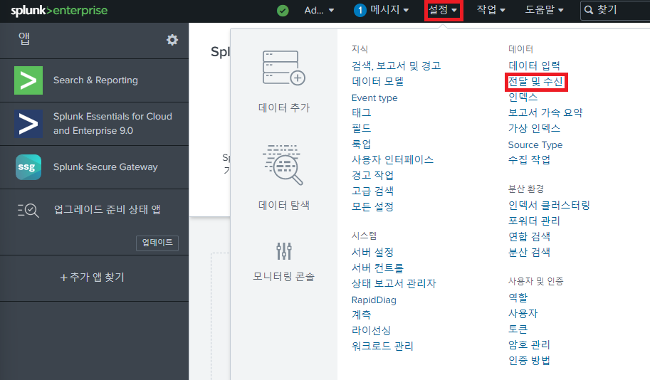 💠 Splunk 인스턴스에서 수신을 활성화하면 포워더에서 전송된 데이터를 수신