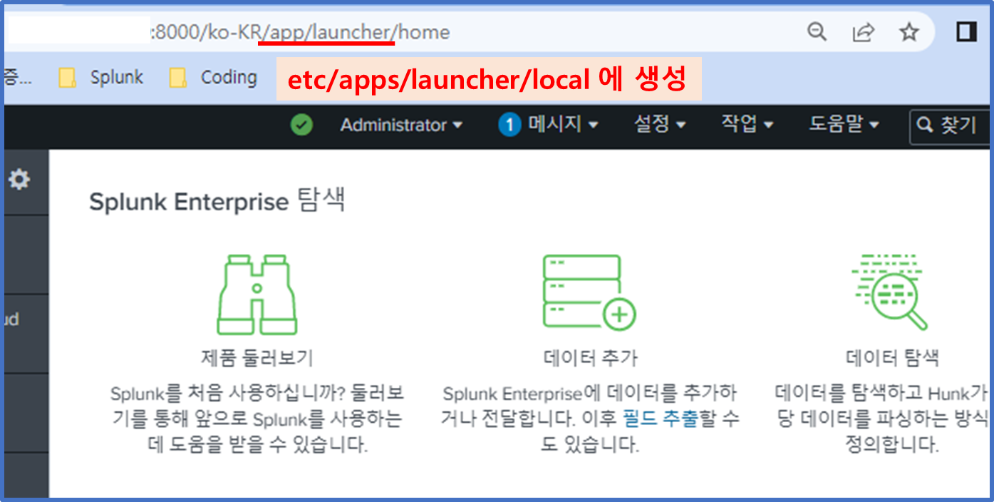 💠 경로를 $SPLUNK_HOME/etc/app/search/local로 변경