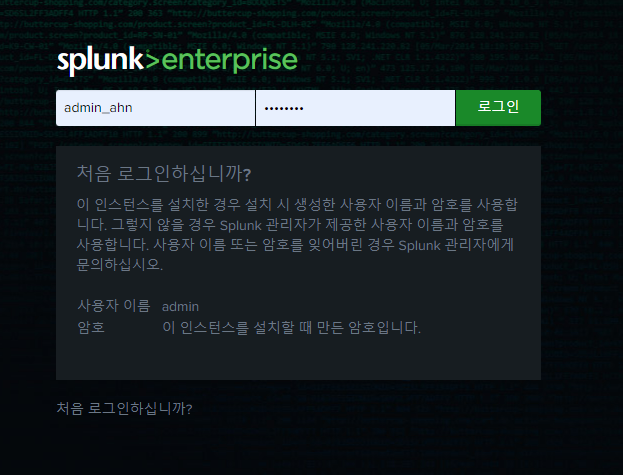 🌱 [ Step 4 ] 얻은 ip로 splunk enterprise에 접속 후 로그인