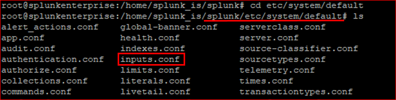 💠위의 두 가지 방법으로 수신 설정을 하면 inputs.conf가 앱 밑에 설치가 된다.