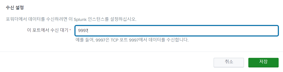보통 splunk indexer의 기본 포트 번호는 9997이다.
