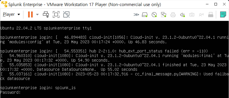 🌱 [ Step 1 ] Splunk enterprise가 있는 가상 머신을 열고 로그인 한다.