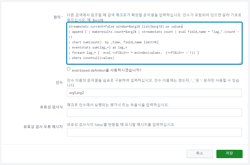 우선 앞에서 처럼 "streamstats" 을 이용해 리스트로 만들어 준다.