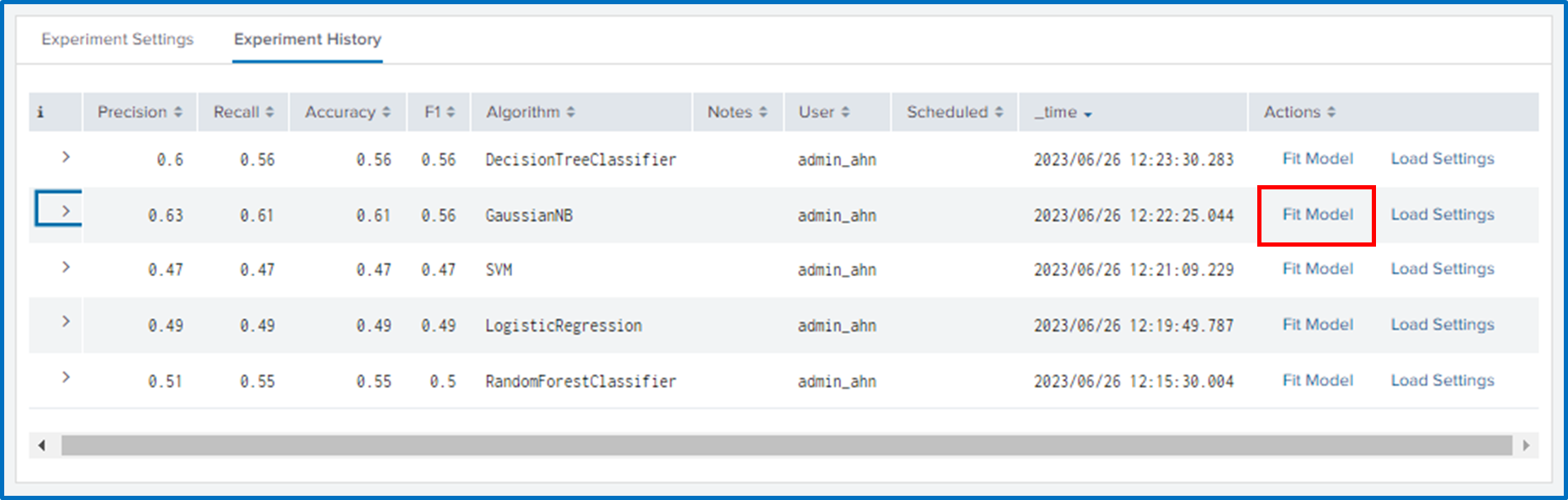 지금까지 테스트 한 내용은 역시 "Experiment History" 에 남아있다.