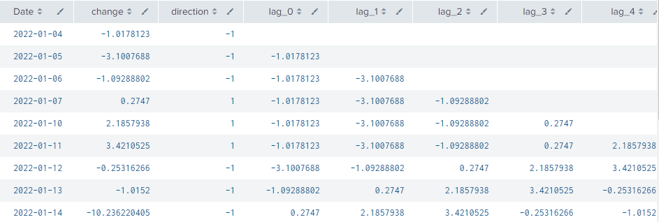 10일전의 데이터를 이용해서 판단을 하고 비어있는 lag 가 있는 데이터는 사용하지 않는다.