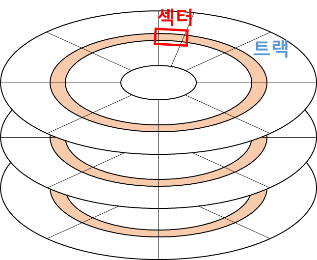 플래터를 여러 동심원으로 나누었을 때 그 중 하나의 원을 트랙이라고 부른다.
