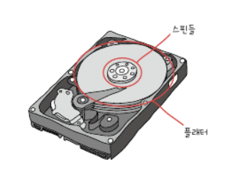 위의 그림에서 볼 수 있는 플래터라는 곳에 데이터가 저장이되고