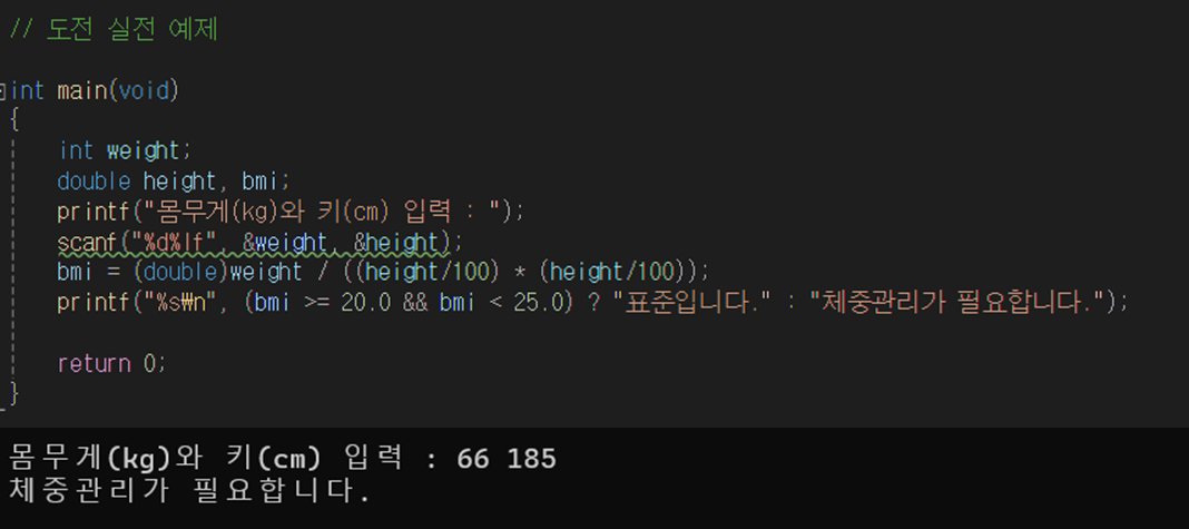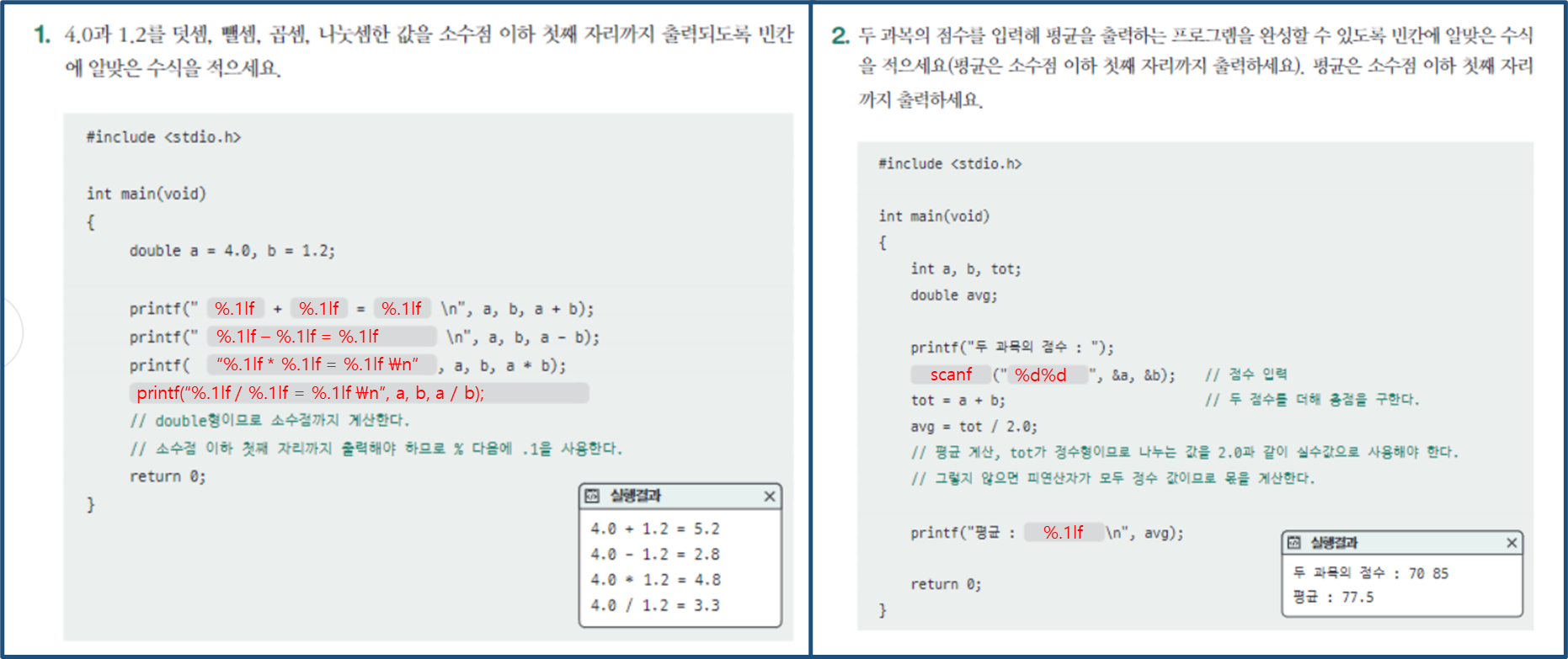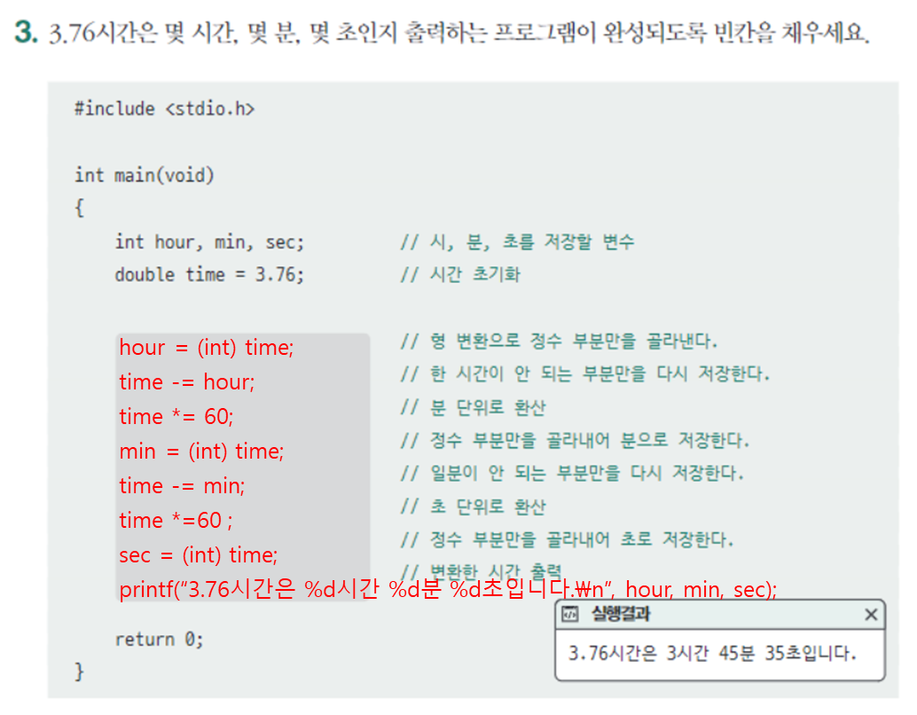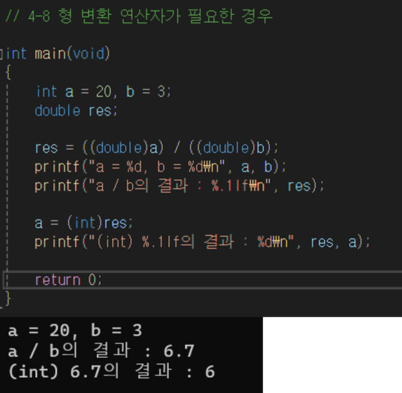 정수(4 byte)와 실수(8byte)를 연산하면 정수가 실수로 자동 변환되어 연산됨
