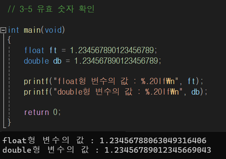 float형은 유효 숫자 7자리, double형은 15자리 범위 내의 값을 사용하는 것이 좋다.