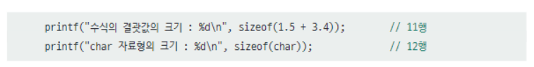 - 자료형의 크기를 알아내는 sizeof 연산자