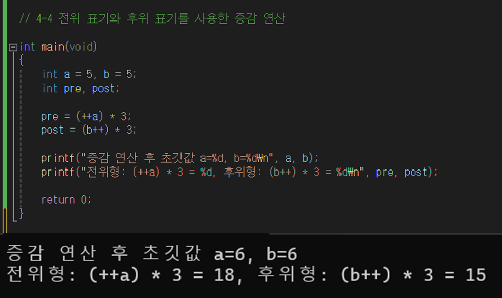 - 값이 변하고 나서 연산에 사용함
