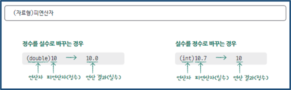 따라서 컴파일러는 컴파일 과정에서 피연산자의 형태가 다르면