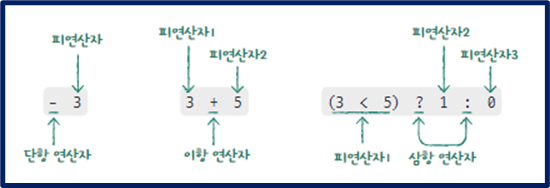 - 단항 연산자, 이항 연산자, 삼항 연산자