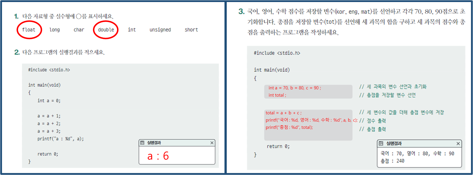 - scanf 함수에서 변수명을 지정할 때는 &를 붙여야 한다.