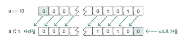 - <<은 비트를 왼쪽으로, >>는 오른쪽으로 이동시킨다.