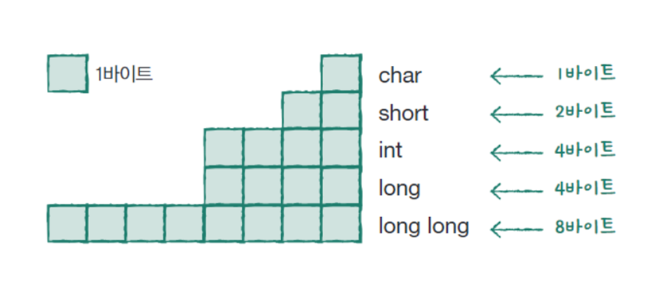 연산 과정에서는 int형으로 변환되므로 실행 속도가 느려질 수 있다. - long long형은 크기가 8바이트이므로 int형으로 저장할 수 없는 큰 범위의 값을 저장할 수 있지만,