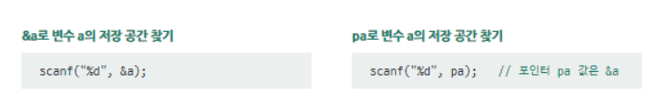 - 포인터 pa는 변수 a가 메모리 어디에 할당되었는지 그 위치를 기억하고 있음.