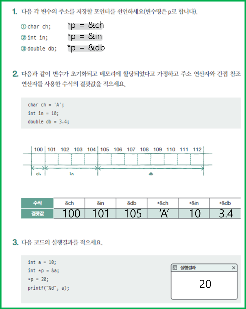 - 메모리의 주소는 필요할 때마다 계속 주소 연산을 수행하는 것보다 한 번 구한 주소를 저장해서 사용하면 편리함.