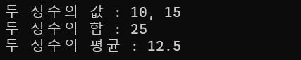 | 포인터를 사용한 두 정수의 합과 평균 계산 |