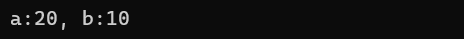 | #include <stdio.h> void swap(void); int main(void) { int a = 10 b = 20; swap(); printf("a:%d, b:%d\n" a, b); return 0; } void swap(void) { int temp; temp = a; a = b; b = temp; } |