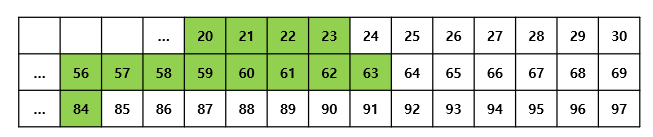 변수 a는 20번지부터 23번지까지 4바이트에 할당되었음 - double형 변수는 56번지부터 63번지까지 8바이트가 할당되었으며