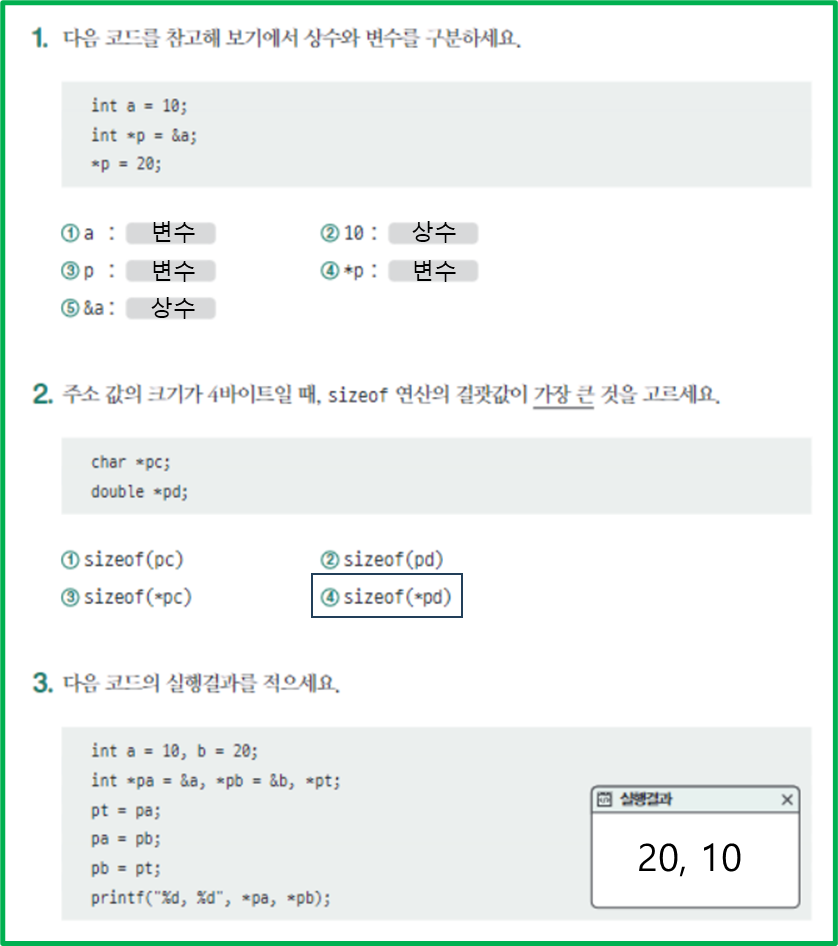 관계 없이 그 크기가 같다는 것에 변함이 없음 - 주소와 포인터의 크기는 sizeof 연산자로 확인할 수 있음